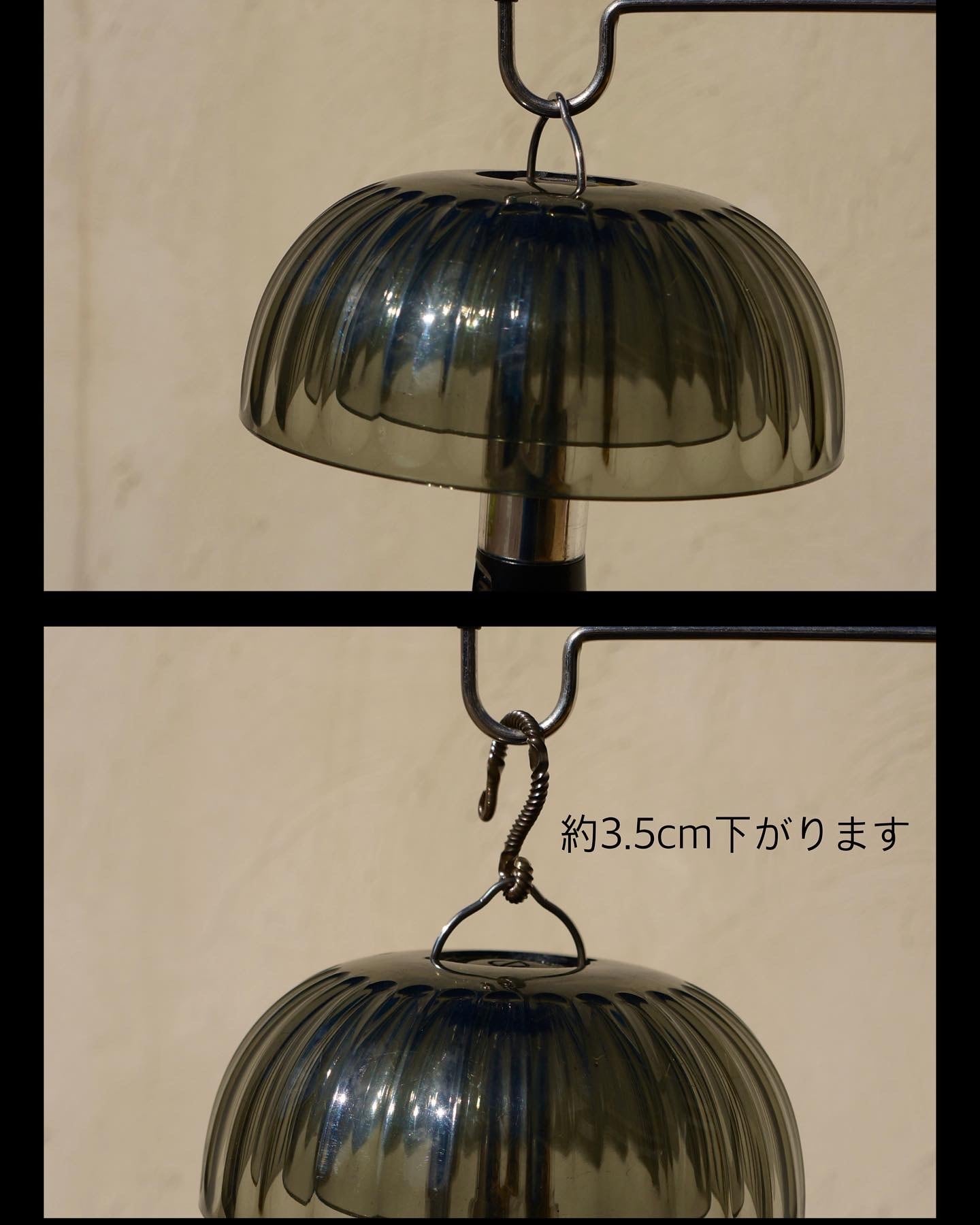 LEDランタン全体を覆うようなシェードをハンガーに掛ける時、LEDのハンドルが短くて掛けにくかったり、吊るした時にハンガーに近過ぎてバランスが気になる時はありませんか?
